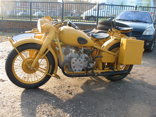 This outfit was sold earlier in 2017. It shows another variation of what we can supply. All brand new, 1959 manufactured, but with full 280 watt alternator electrics, starter motor, indicators and reverse gear. Extras include pillion seat, mirrors, indicators, coffee can rear light and mph speedo. It comes registered, with age related number, MOT and taxed - which is free, anyway. From May 2018 no MOT will be necessary and tax will be free. All you need is insurance and purchase price to ride away.